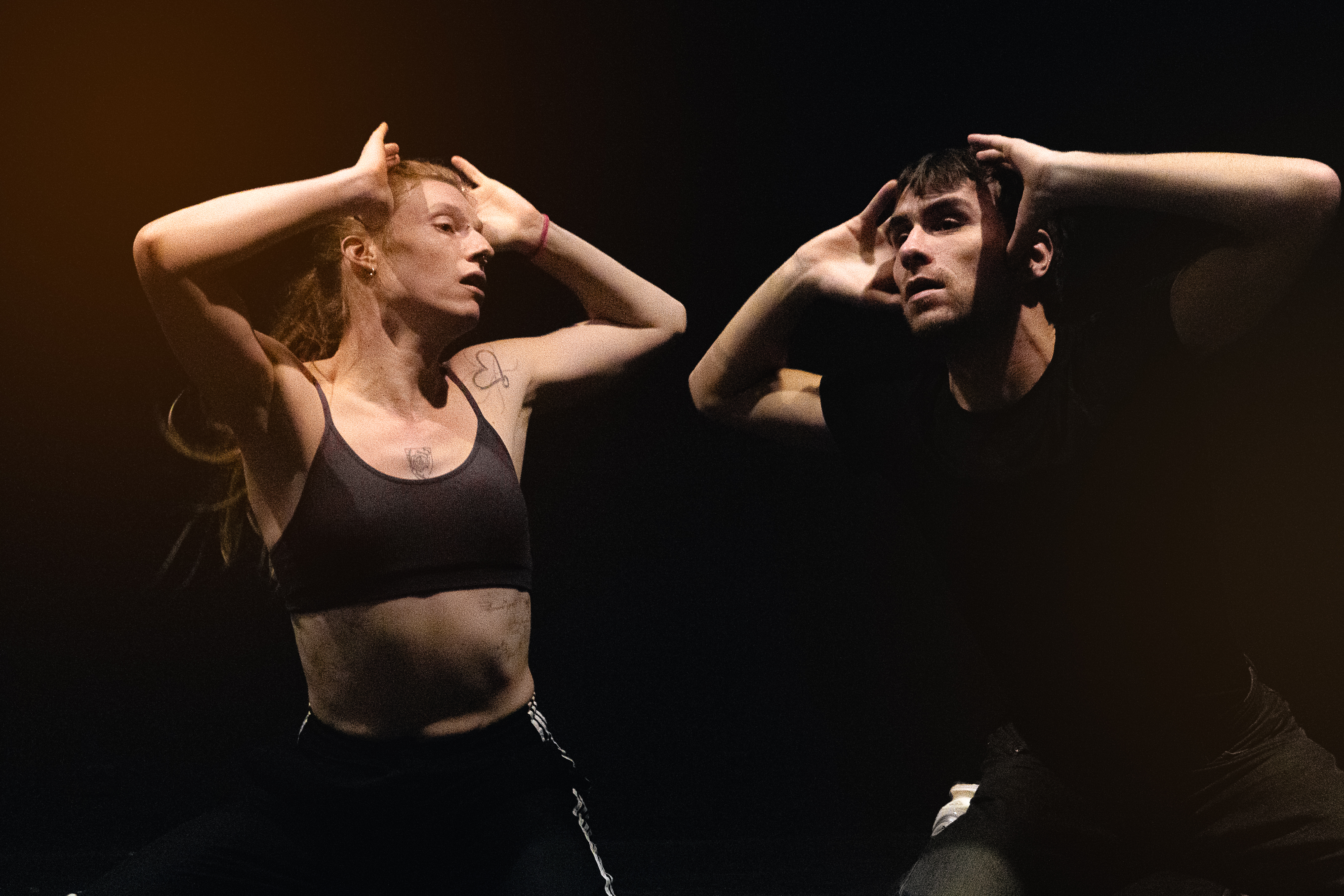 Laju Bourgain et Théophylle Dcx explorent le phénomène chorégraphique de la Macarena, popularisée en 1996. Celle qui essaye de devenir universelle et de dépasser les frontières sociales et culturelles. Leur performance détourne, transforme et épuise les pas originaux pour questionner la mémoire corporelle et les émotions attachées à ces gestes standardisés. En répétant ces synchronisations, iels révèlent des liens qui traversent leurs corps. Cette expérimentation chorégraphique et politique fait de la Macarena un matériau de réflexion sur le langage, les affects et les narrations qui nous lient. Festival Parallèle Photos : Arsène Marki Laju Bourgain and Théophylle Dcx explore the choreographic phenomenon of the Macarena, popularized in 1996—a dance that strives for universality, transcending social and cultural boundaries. Their performance subverts, transforms, and exhausts the original steps to question embodied memory and the emotions attached to these standardized gestures. By repeating these synchronizations, they reveal the connections flowing through their bodies. This choreographic and political experimentation turns the Macarena into a medium for reflecting on language, affects, and the narratives that bind us together. Festival Parallèle Photos : Arsène Marki