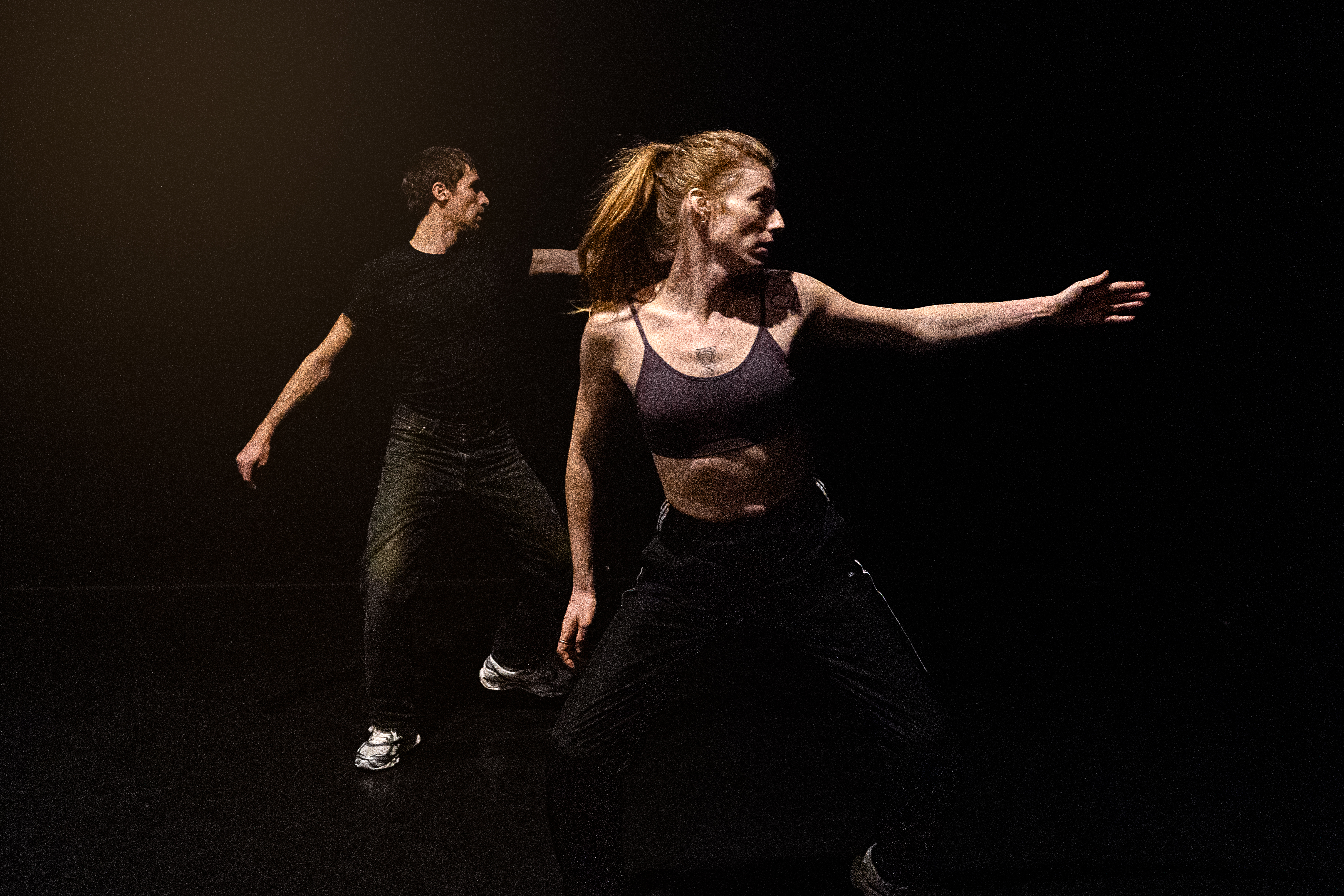 Maria Silk et Théophylle Dcx inaugurent leur collaboration artistique avec la présentation d’un nouveau duo intitulé On the floor. Leur recherche chorégraphique explore les héritages queers portés par les genres musicaux de dance music des années 1980 — le post-disco et la hi-NRG. En entrant dans des états altérés induits par la danse, le duo voyage à travers un espace intérieur fait d’hédonisme, d’épuisement, de fuite et de discipline, guidé par le rythme four-on-the-floor qui propulse cette musique vitale. Considérant ce courant musical comme une archive, On the Floor cherche à mettre en scène les liens entre la musique, l’épidémie de VIH/sida et la mémoire de cette communauté ouvrant ainsi de nouvelles perspectives sur le pouvoir de la vie nocturne comme moyen de développer des stratégies de deuil et de survie queer. Ce travail explore également des manières d’habiter l’épuisement — l’épuisement des corps face au virus, à la crise, à la lutte ; l’épuisement d’un corps se dissolvant dans l’intensité brûlante de cette musique. Margot Thurin, Directrice des programmes au CounterPulse Theater Photos : Robbie Sweeny Maria Silk and Théophylle Dcx launch their artistic collaboration with the presentation of a new duet titled "On the floor". Their choreographic research explores the queer legacies carried by the 1980s dance music genres of post-disco and hi-NRG. Entering altered states induced by dance, the duo will travel into an inner space of hedonism, exhaustion, escape, and discipline, guided by the four-on-the- floor rhythm that drives this vital music. Considering this musical movement as an archive, "On the floor" seeks to stage the connections between music, the HIV/AIDS epidemic, and the memory of this community — opening new perspectives on the power of nightlife as a means to develop strategies for queer mourning and survival. This work will also reveal ways of working with exhaustion — the exhaustion of bodies facing the virus, the crisis, the struggle; the exhaustion of a body dissolving in the blazing intensity of this music. Margot Thurin, presenting associate CounterPulse Theater Photos : Robbie Sweeny